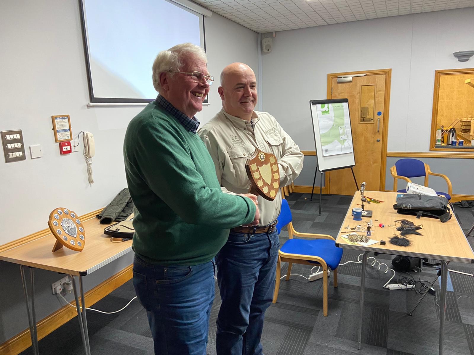 Firstly Tony Mitchell was presented with the Novice Fly tying award and secondly Paul Aston received his shield for winning the open category in the annual club tying competition, congratulations to both of them.