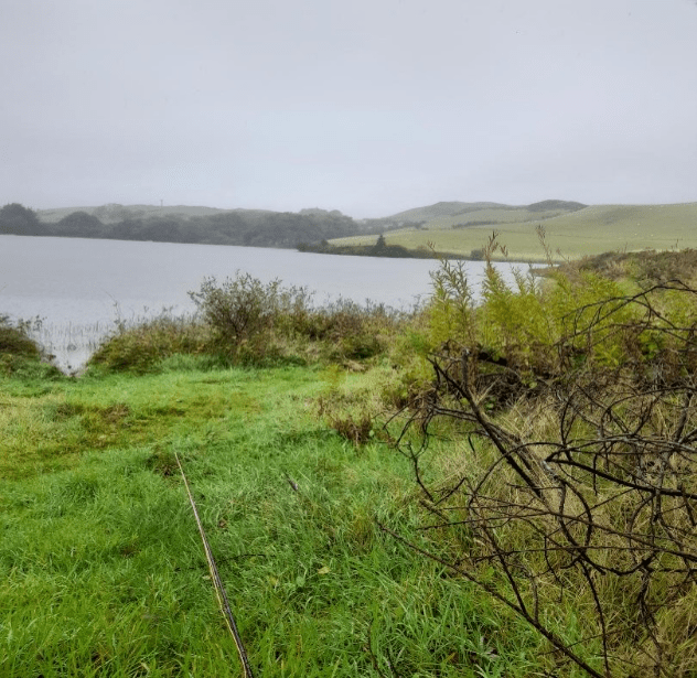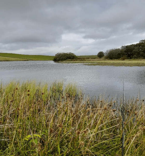 Tony’s 1st choice is on the point a small purple bead headed colourful nymph and a black spider. It’s fair to say we both changed flies many times and had a few pulls but none connected to the net. The location was beautiful but not the most easy of walking around, too many tussocks, reeds and mounds to navigate and much swamp and marsh ground around the edges of the water, along with the reed beds making it difficult to cast. Then add the 1and half mile track round the field to the parking area (at least 5 spaces) this site is only for the adventures and brave. If we had fished this location on Saturday with the rain, we would have had to fit chains on to get out, slippery slate rocks and wet grass combined with the slope.