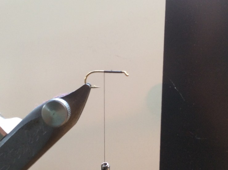 Attach thread and run down the hook in touching turns, stop two thirds down the hook shank.